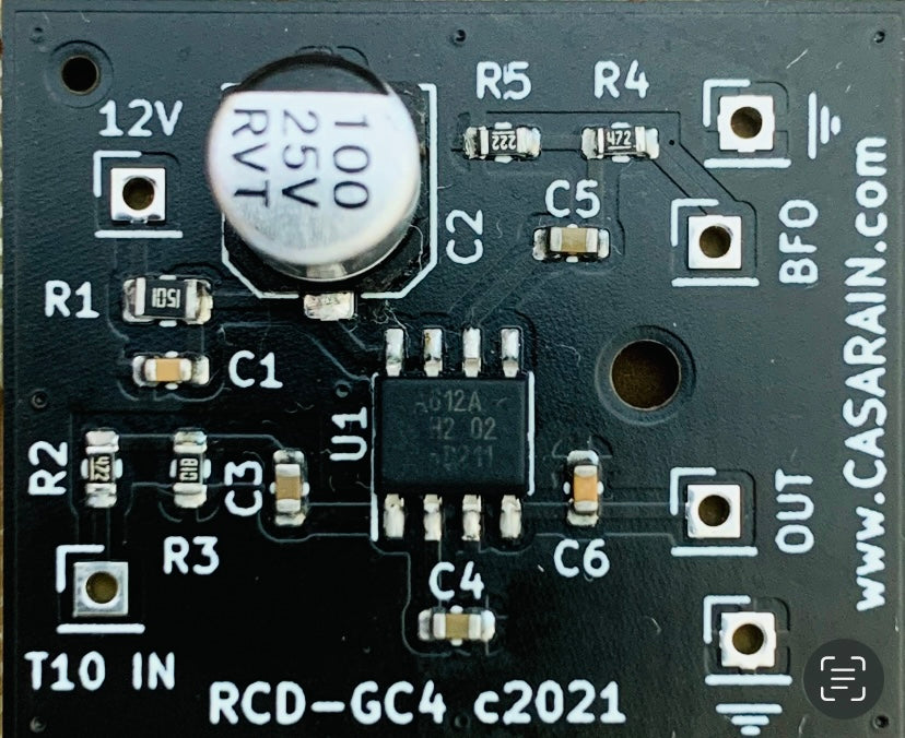The dual-diode product detector in the 11 tube Drake R-4A (aka R-4A "late") and the Drake R-4B has poor dynamic range, promoting distortion on AGC attack. This manifests itself as annoying clicking and popping on strong signals. A modern adaptation of the former Sherwood board, this active Gilbert-cell detector will correct this deficiency. Installation takes only about 30 minutes but does require basic soldering and schematic reading skills. Board size is 30mm x 25mm